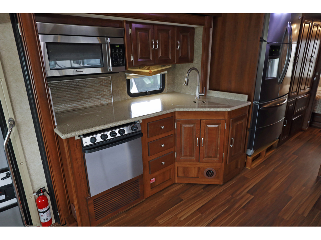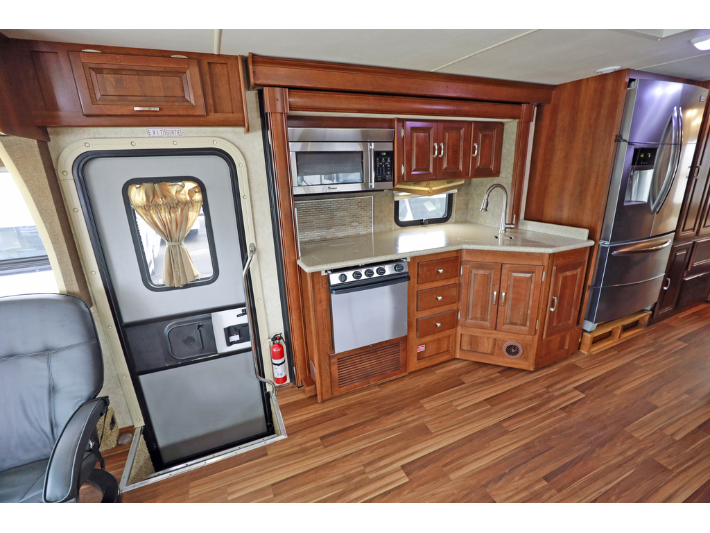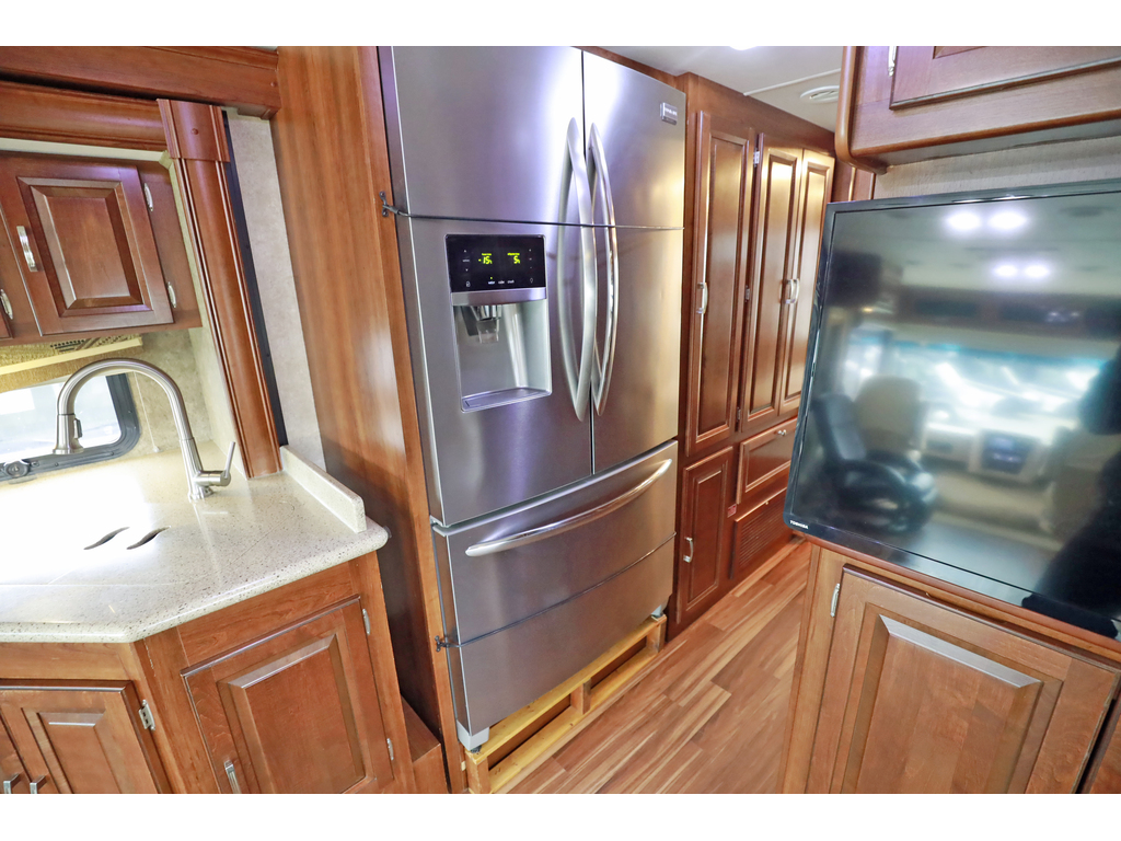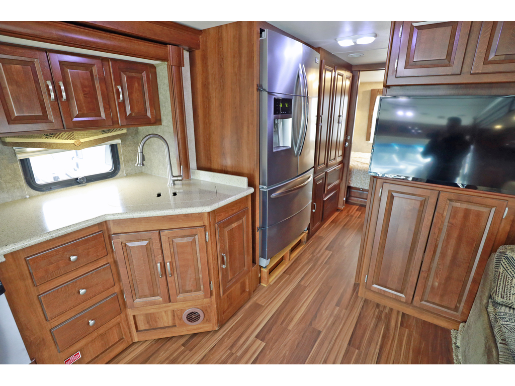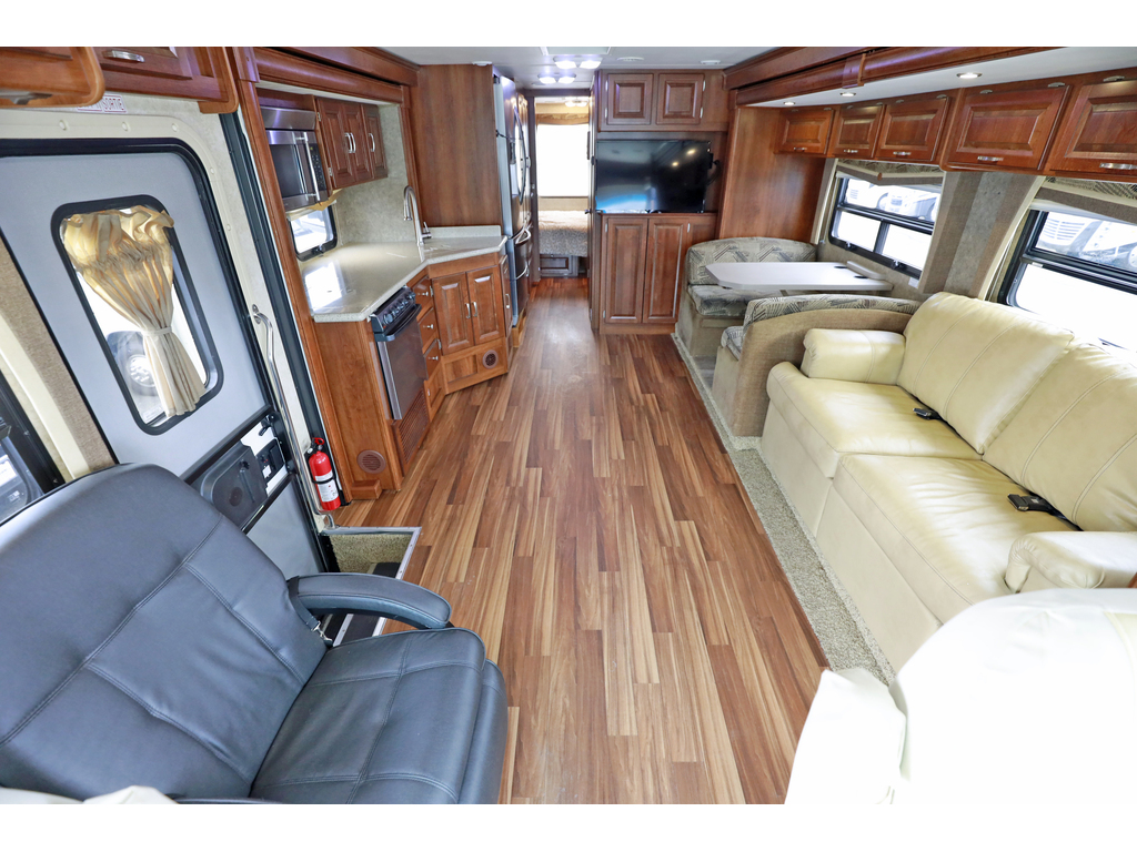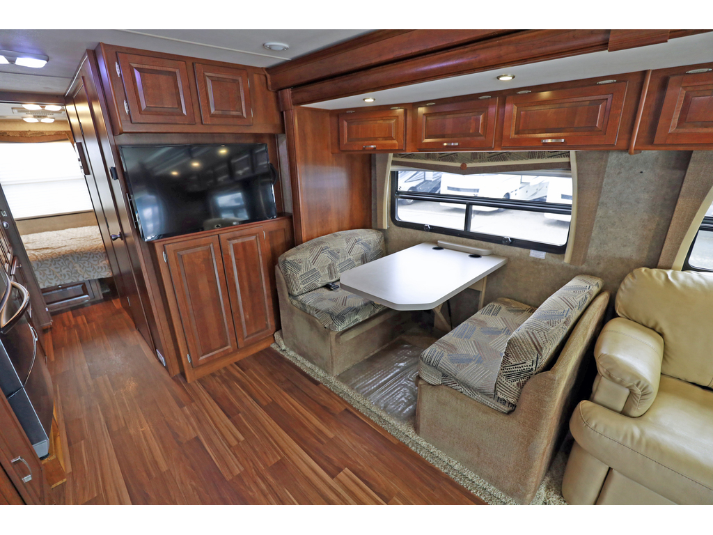 Forest River Georgetown 328TS est un motorisé de classe A à essence, mesurant environ 34,3 pieds et bâti sur un châssis Ford F-53 avec un moteur Triton V10 de 6,8L (362ch). Il dispose de trois extensions (slides), incluant un coin salon/cuisine spacieux, un lit Queen, et une capacité de couchage pouvant accueillir jusqu'à 6 personnes. Caractéristiques principales du Georgetown 328 2015 : • Motorisation : Moteur Triton V10 6.8L, 362 HP, essence. • Dimensions : Longueur de 34' 4" (\(10.5\) m), hauteur intérieure de 80" (\(2032\) mm). • Aménagement : Trois extensions (3-slides), souvent avec lit Queen dans la chambre, canapé-lit et coin repas. • Capacités : Eau fraîche : 50 gal (\(189\) L), Eaux grises : 41 gal (\(155\) L), Eaux noires : 41 gal (\(155\) L), Propane : 29 gal (\(123\) lbs). • Équipements : Vérins de mise à niveau hydrauliques (4 points), génératrice 5500 W, deux unités d'air climatisé , téléviseur, caméra de recul • Cuisine : Réfrigérateur de type résidentiel , cuisinière 3 brûleurs, four, micro-ondes. Ce modèle est apprécié pour son espace de vie ouvert et ses nombreux rangements, adaptés aux longs séjours. • Possibilité de payer 1 seul taxe si l’acheteur ne nécessite pas de financement www.citecaravane.com 450-623-5050 170 rue dubois , St-eustache J7P 4W9