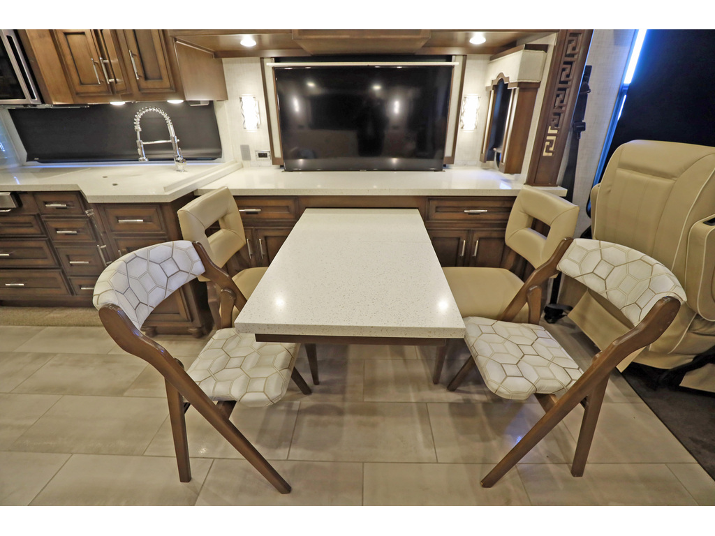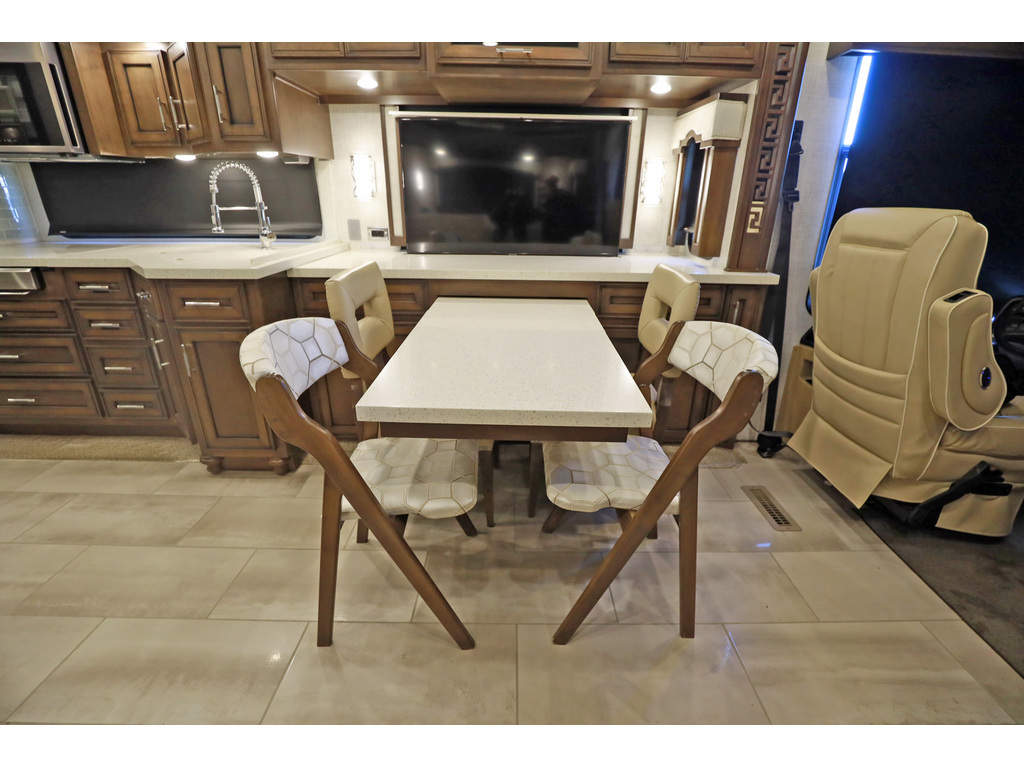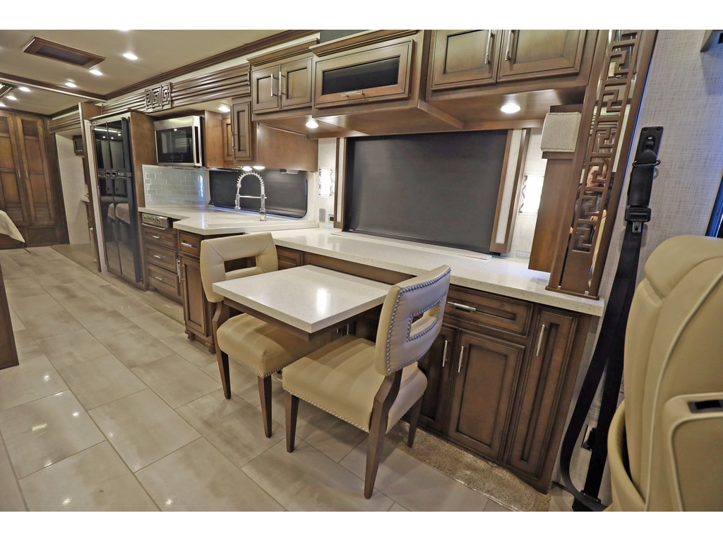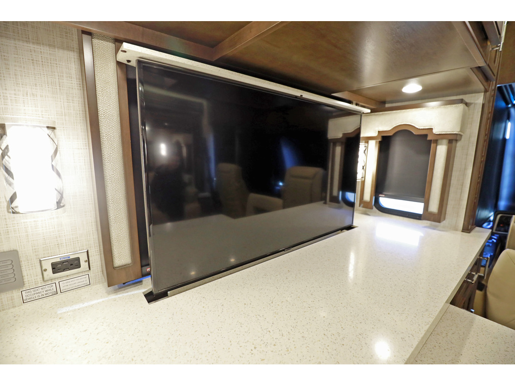 Newmar Ventana 3407 2020 diesel pusher est un véhicule récréatif (VR) de luxe, conçu pour offrir une expérience de voyage inégalée alliant confort, performance et style. Mesurant 34.8 pieds de long, ce modèle de la marque Newmar se distingue par son châssis Freightliner, avec transmission Allison 2500MH et une suspension pneumatique pour maximiser la tenue et le confort routier. C’est avec un moteur diesel Cummins 360 hp générant 800 lb-ft de torque, des roues de 22,5 pouces avec mags Alcoa et une génératrice diesel Onan 6KW que vous serez équipé pour attaquer votre prochain voyage. Ce VR est aussi équipé d’un système Magnum Energy pour une gestion de l’électricité pour efficace et sécuritaire. De plus, le réservoir d’eau fraîche de 105 gallons, un panneau solaire et un réfrigérateur 4 portes 2 voies vous rendront moins dépendants des services. Vous serez rapidement charmés par le souci du détail et la qualité de fabrication des produits de marque Newmar ! WOW Newmar Ventana 3407 2020 diesel pusher is a luxury recreational vehicle (RV), designed to offer an unparalleled travel experience combining comfort, performance and style. Measuring 34.8 feet long, this Newmar brand model is distinguished by its Freightliner chassis, with Allison 2500MH transmission and air suspension to maximize handling and road comfort. It is with a Cummins 360 hp diesel engine generating 800 lb-ft of torque, 22.5-inch wheels with Alcoa mags and an Onan 6KW diesel generator that you will be equipped to face your next trip. This RV is also equipped with a Magnum Energy system for efficient and safe electricity management. Additionally, the 105-gallon fresh water tank, a solar panel and a 4-door 2-way refrigerator will make you less dependent on services. You will quickly be charmed by the attention to detail and the manufacturing quality of Newmar brand products!