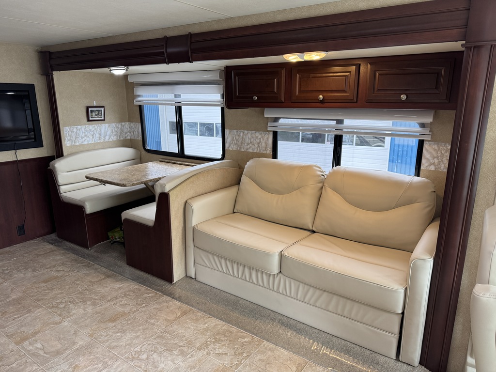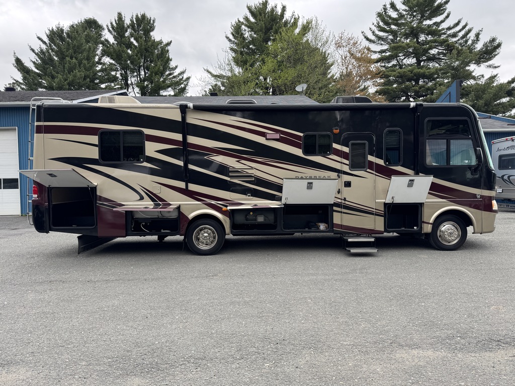 Thor Daybreak 3211 2011, Mécanique Ford V10, Génératrice Onan 5 500W, Auvent électrique de 16 pieds, Auvents d'extensions, 2 thermopompes avec ducts de ventilation, Cuirs en excellent condition, Poêle et four au propane, Réfrigérateur Dometic au propane, Lit queen et beaucoup plus!!!! Année : 2011 Mécanique : Ford V10 Triton Châssis : Ford F-Series Carburant : Essence Transmission : TorqShift Motricité : 4X2 Longueur hors-tout(pieds) : 31.9 Largeur(pieds) : 8.3 Hauteur(pieds) : 12 Empattement(pouces) : 208 PNBV(Lbs) : 18,000 Réservoir essence(Gal.) : 80 Capacité eau fraîche(Gal.) : 65 Capacité eau grise(Gal.) : 47 Capacité eau noir(Gal.) : 47 Capacité réservoir propane(Lbs) : 81 Nombre d’extensions : 2 Capacité d’hébergement : 6 Pneus : 245/70 R19.5 Air conditionné(BTU) : 28,500 Chauffage(BTU) : 30,000 Capacité chauffe-eau(Gal.) : 6