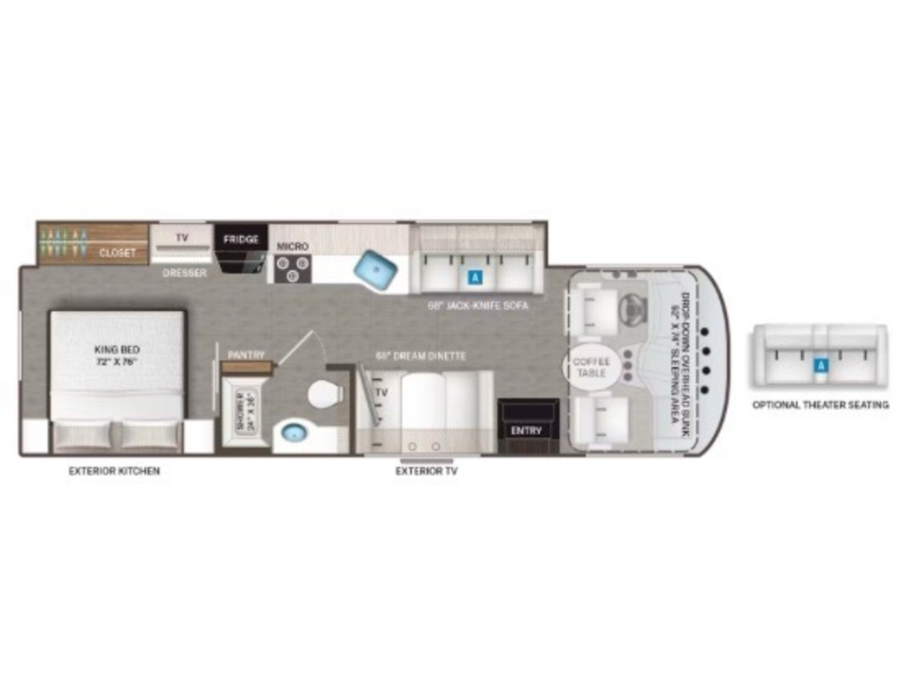 Thor Motor Coach Windsport 29L Essence 2026Caractéristiques techniques essentielles • Motorisation & châssis : V8 7,3 L sur • Châssis Ford F-53, 335 ch, • Transmisission : automatique TorqShift 6 vitesses avec overdrive. • Dimensions & capacités : o Longueur : ˜ 30 ft 11 in (371 in / 9,4 m) • Peux accueillir 6 personnes au coucher o Réservoirs : • Eau fraîche : 50 gal • Gris : 40 gal • Noir : 40 gal Équipement standard • Vérins de nivellement automatiques avec commandes à écran tactile • Pet-Link™ Attache multifonction pour animaux • Radio de tableau de bord à écran tactile 14'' avec Bluetooth®, Apple CarPlay®/Android Auto® • Rétroviseurs extérieurs chauffants et télécommandés avec caméras latérales • Sièges capitaine inclinables/pivotants • Siège conducteur électrique • Lit escamotable électrique au-dessus de la cabine • Garnitures de roues en acier inoxydable • Coin repas « Dream Dinette » • Chargeur de téléphone sans fil avec port USB intégré dans la table • Dispositif de sécurité enfant (attache unique) • Réfrigérateur à double porte • Cuisinière 3 brûleurs au gaz/four avec couvercle en verre • Four à micro-ondes • Prise 110V dans la chambre avec onduleur pour CPAP • Douche avec porte en verre • Téléviseur 40'' dans le salon • Téléviseur 32'' dans la chambre • Téléviseur 32'' avec Bluetooth® et barre de son à l’extérieur • Ports de recharge USB – chambre et salon • Cuisine extérieure avec gril coulissant Systèmes et électricité • Génératrice à gaz 4,0 • Climatisation de toit haute performance • Démarrage automatique de la génératrice • Deux batteries auxiliaires • Raccord extérieur pour propane • Système de charge solaire 100W avec contrôleur de puissance • Port solaire extensible • Chauffe-eau sans réservoir • Réservoirs isolés avec tapis chauffants • Système de rinçage du réservoir d’eaux noires • Onduleur 1800W • Douche extérieure • Chapeau de ventilation de réservoir RV 360 Siphon • Système de câblage multiplex Rapid Camp+™ • Amplificateur WiFi Winegard ConnecT™ avec 4G *** Prendre note que les photos et les options décrites peuvent différées *** Toute l'équipe de Centre du VR est fière de vous présenter le plus vaste inventaire de véhicules récréatifs neufs et d'occasions à vendre au Québec. Vous y trouverez notamment les marques Columbus, Rockwood, Impression, Kodiak, Coleman, Cruiser RV, Flagstaff, E-Pro, Springdale, Sunset Trail, Cougar, Chaparral, Bontrager Outdoors, motorisés Axis, Hurricane, Outlaw, Coachmen Cross Trail, Prism, Echelon, Fleetwood, Four winds, Compass, Beyond, Nova et Pixel. Remorques N&N, Apogée et Armorteck sont aussi disponibles. En inventaire pour vous, la série de génératrices Ducar. Vous avez un coup de coeur ? Envoyez-nous une demande d'information. Financement sur place. N'oubliez pas également que rien ne vaut une visite du modèle qui vous intéresse pour vous aider à prendre une décision éclairée. Passez donc nous voir afin de jeter un coup d'oeil plus détaillé à nos caravanes et caravanes à sellettes neuves.