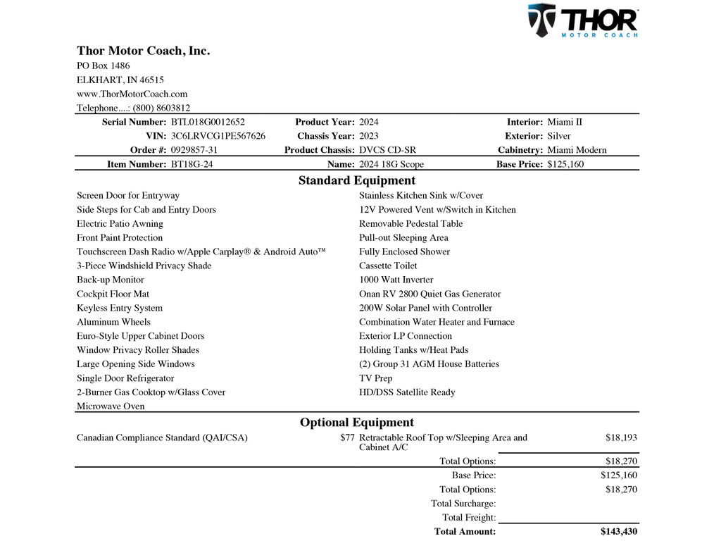 Thor Motor Coach Scope 2024 à vendre