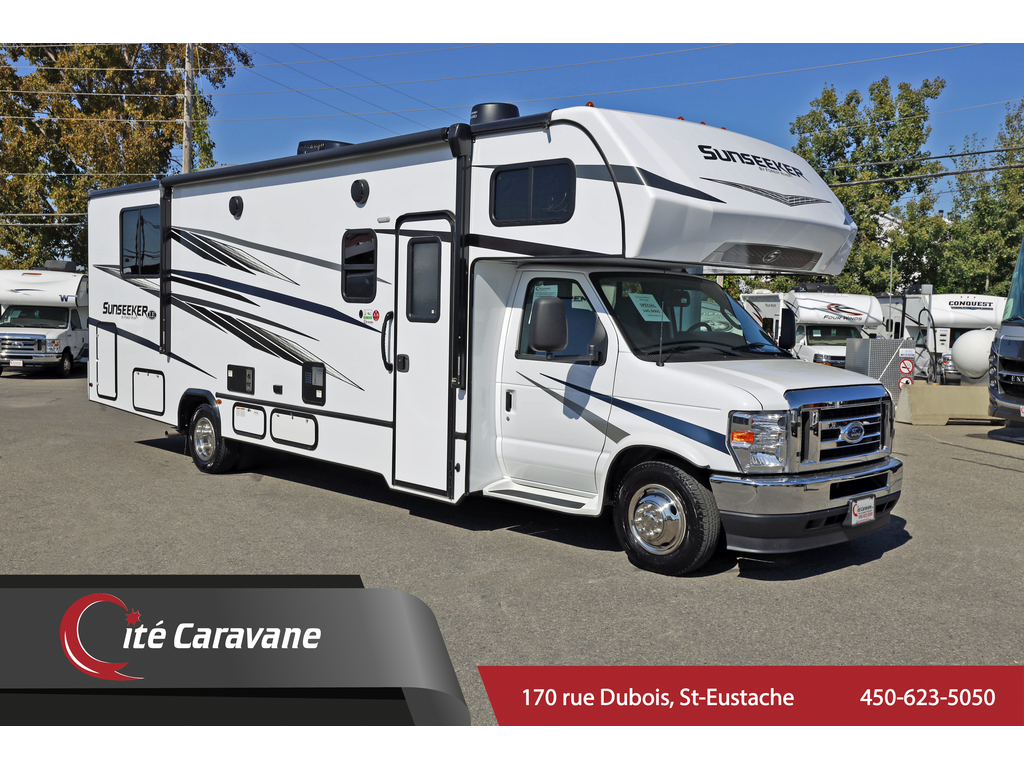 Forest River Sunseeker 2850 LE 1 extension CLASSE C Tissu : Slate, boiseries : Vermont Oak: Ford V-8 7.3L, Prise 30AMP , chauffe-eau 6 gallons , chauffage 30,000BTU , A/C au toit 13.5BTU canalisé , murs de 2, fini gel-coat , toit en fibre de verre , auvent électrique , hitch de 7500lbs ,TV , frigidaire 10 pieds cube , tiroirs styles résidentiels , cuisinière a trois bruleur , stores de nuit , plafond de 7 pieds , génératrice de 4000watts onan, batteries auxiliaire, micro-onde , sièges avant en tissue. , arctic Pack ( 4 saisons ) , couvert en fibre de verre , matelas Queen , Prélart a grandeur Beauflor , antenne digitale, comptoirs de luxe , camera de recule + 1124$/MOIS + taxes ! www.citecaravane.com 450-623-5050 170 RUE DUBOIS , ST-EUSTACHE, SUR LE BORD DE LA 640! UNE ENTREPRISE FAMILIALE A VOTRE SERVICE DEPUIS 1973 ! , DÉPOSITAIRE NUMÉRO 1 FOREST RIVER SUNSEEKER ! LE SPÉCIALISTE DU VR AU QUÉBEC ! Forest River Sunseeker 2850 LE 1 slide CLASS C fabric : Slate, wood : Vermont Oak : Ford V-8 7.3L , 30AMP , 6 gallon water heater , 30,000BTU heater , 13.5BTU ducted roof A/C , 2inch thick walls , gel-coat exterior , fiberglass roof , electric awning , 7500lbs hitch , , TV , 10 cubic feet fridge , residential style drawers , 3 range burner , micro-wave , night shades , 7 feet high ceilings , 4000watts Onan generator, auxiliary battery, cloth front seats , arctic pack ( 4 seasons ) ,fiberglass front cap , Queen matress , Beauflor linoleum throughout , Digital Antenna ,Upgraded countertops , back up camera+ . 1124$/MONTH +taxes. www.citecaravane.com 450-623-5050 ! CALL US TODAY ! Cité Caravane, 170 rue Dubois in Saint-Eustache, adjacent to the 640 highway. A FAMILY OWNED BUISNESS SINCE 1973 ! QUÉBEC s RV SPECIALIST !