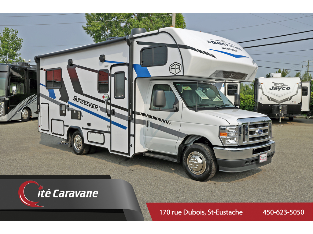 Forest River Sunseeker 2150 1 extension CLASSE C Tissu : Lava , boiseries :River teak , , Prise 30AMP , chauffe eau 6 gallons , chauffage 30,000BTU , A/C au toit 13.5BTU canalisé , murs de 2, fini gel-coat , toit en fibre de verre , auvent électrique , hitch de 7500lbs ,TV , frigidaire 10 pieds cube , tiroirs styles résidentiels , cuisinière a trois bruleur , stores de nuit , plafond de 7 pieds , génératrice de 4500watts NPS, batterie auxiliaires , micro-onde a convection , sièges avant enTissue ,appareils en stainless , arctic Pack ( 4 saisons ) , couvert en fibre de verre , matelas Queen 60x80 , Prélart a grandeur Beauflor , antenne digitale, comptoirs de luxe, caméra de recule et latérales + panneau solaire 1243$/MOIS + taxes ! www.citecaravane.com 450-623-5050 170 RUE DUBOIS , ST-EUSTACHE, SUR LE BORD DE LA 640! UNE ENTREPRISE FAMILIALE A VOTRE SERVICE DEPUIS 1973 ! , DÉPOSITAIRE NUMÉRO 1 FOREST RIVER SUNSEEKER ! LE SPÉCIALISTE DU VR AU QUÉBEC ! Forest River Sunseeker 2150 1 slide CLASS C fabric : Lava , wood : River teak , 30AMP , 6 gallon water heater , 30,000BTU heater , 13.5BTU ducted roof A/C , 2inch thick walls , gel-coat exterior , fiberglass roof , electric awning , 7500lbs hitch , TV , 10 cubic feet fridge , residential style drawers , 3 range burner oven ,convection micro-wave , night shades , 7 feet high ceilings , 4500watts NPS generator, auxiliary battery, Cloth front seats , stainless steel appliances , arctic pack ( 4 seasons ) , fiberglass front cap , Queen 60x80 matress , Beauflor linoleum throughout , Digital Antenna ,Upgraded countertops, back up and side cameras + Solar Panel . 1243$/MONTH +taxes. www.citecaravane.com 450-623-5050 ! CALL US TODAY ! Cité Caravane, 170 rue Dubois in Saint-Eustache, adjacent to the 640 highway. A FAMILY OWNED BUISNESS SINCE 1973 ! QUÉBEC s RV SPECIALIST !