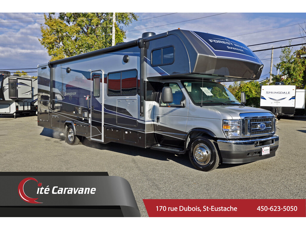 vente en cours - sale pending Forest River Sunseeker 3050 1 extension CLASSE C Pacific full paint , ***CRICS HYDRAULICS*** + Tv exterieur Interieur : lava + boiserie : River teak Ford 7.3L V8, Prise 30AMP , chauffe eau 6 gallons , chauffage 30,000BTU , A/C au toit 13.5BTU canalisé , ballons a air ride rite , murs de 2, fini gel-coat , toit en fibre de verre , auvent électrique , hitch de 7500lbs ,TV , frigidaire 10 pieds cube , tiroirs styles résidentiels , cuisinière a trois bruleur , stores de nuit , plafond de 7 pieds , génératrice de 4000watts onan, 2 batteries auxiliaires ,, micro-onde , sièges avant en cuirette appareils en stainless , arctic Pack ( 4 saisons ), couvert en fibre de verre , matelas Queen , Prélart a grandeur Beauflor , antenne digitale, comptoirs de luxe, *PREMIUM CAMPING PACKAGE (mirroirs chauffants/électrique, caméra de recule et latérales, cinema maison 5.1 , black tank flush) + panneau solaire Finacement facile sur place ! www.citecaravane.com 450-623-5050 170 RUE DUBOIS , ST-EUSTACHE, SUR LE BORD DE LA 640! UNE ENTREPRISE FAMILIALE A VOTRE SERVICE DEPUIS 1973 ! , DÉPOSITAIRE NUMÉRO 1 FOREST RIVER SUNSEEKER ! LE SPÉCIALISTE DU VR AU QUÉBEC ! Forest River Sunseeker 3050 1 slide CLASS C Pacific full paint interior : Lave + cabinets : river teak ***HYDRAULIC JACKS ** + exterior TV Ford 7.3L V8 , 30AMP , 6 gallon water heater , 30,000BTU heater , 13.5BTU ducted roof A/C , ride rite air suspension , 2inch thick walls , gel-coat exterior , fiberglass roof , electric awning , 7500lbs hitch , TV , 10 cubic feet fridge , residential style drawers , 3 range burner oven , micro-wave , night shades , 7 feet high ceilings , 4000watts Onan generator, 2 auxiliary batteries, , leatherette front seats , stainless steel appliances , arctic pack ( 4 seasons ) fiberglass front cap , Queen matress , Beauflor linoleum throughout , Digital Antenna ,Upgraded countertops,*PREMIUM CAMPING PACKAGE (heated/electric mirrors,back up and side cameras, 5.1 surround sound,black tank flush)+ Solar Panel . Financement facile sur place www.citecaravane.com 450-623-5050 ! CALL US TODAY ! Cité Caravane, 170 rue Dubois in Saint-Eustache, adjacent to the 640 highway. A FAMILY OWNED BUISNESS SINCE 1973 ! QUÉBEC s RV SPECIALIST !