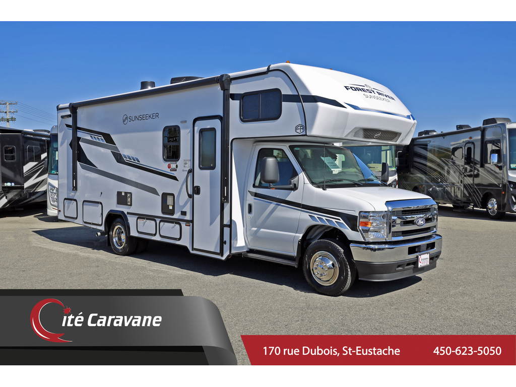 Forest River Sunseeker 2440 2 extensions CLASSE C + crics hydraulics Tissu : Lava boiseries : River teak , Ford V8 7.3L , Prise 30AMP , chauffe eau 6 gallons , chauffage 30,000BTU , A/C au toit 13.5BTU canalisé , ballons a air ride rite , murs de 2, fini gel-coat , toit en fibre de verre , auvent électrique , hitch de 7500lbs ,TV , frigidaire 10 pieds cube , tiroirs styles résidentiels , cuisinière a trois bruleur , stores de nuit , plafond de 7 pieds , génératrice de 4000watts onan, 2 batteries auxiliaires ,, micro-onde , sièges avant en cuirette appareils en stainless , arctic Pack ( 4 saisons ), couvert en fibre de verre , matelas queen , Prélart a grandeur Beauflor , antenne digitale, comptoirs de luxe, *PREMIUM CAMPING PACKAGE (mirroirs chauffants/électrique, caméra de recule et latérales, cinema maison 5.1 , black tank flush) + panneau solaire , 1427$+txs/MOIS ! www.citecaravane.com 450-623-5050 170 RUE DUBOIS , ST-EUSTACHE, SUR LE BORD DE LA 640! UNE ENTREPRISE FAMILIALE A VOTRE SERVICE DEPUIS 1973 ! , DÉPOSITAIRE NUMÉRO 1 FOREST RIVER SUNSEEKER ! LE SPÉCIALISTE DU VR AU QUÉBEC ! Forest River Sunseeker 2440 2 slides CLASS C fabric : Lava , wood : River teak , Ford V8 7.3L , 30AMP , 6 gallon water heater , 30,000BTU heater , 13.5BTU ducted roof A/C , ride rite air suspension , 2inch thick walls , gel-coat exterior , fiberglass roof , electric awning , 7500lbs hitch , TV , 10 cubic feet fridge , residential style drawers , 3 range burner oven , micro-wave , night shades , 7 feet high ceilings , 4000watts Onan generator, 2 auxiliary batteries, , leatherette front seats , stainless steel appliances , arctic pack ( 4 seasons ) , fiberglass front cap , queen matress , Beauflor linoleum throughout , Digital Antenna ,Upgraded countertops,*PREMIUM CAMPING PACKAGE (heated/electric mirrors,back up and side cameras, 5.1 surround sound,black tank flush)+ Solar Panel . 1427$+txs/MONTH. www.citecaravane.com 450-623-5050 ! CALL US TODAY ! Cité Caravane, 170 rue Dubois in Saint-Eustache, adjacent to the 640 highway. A FAMILY OWNED BUISNESS SINCE 1973 ! QUÉBEC s RV SPECIALIST !