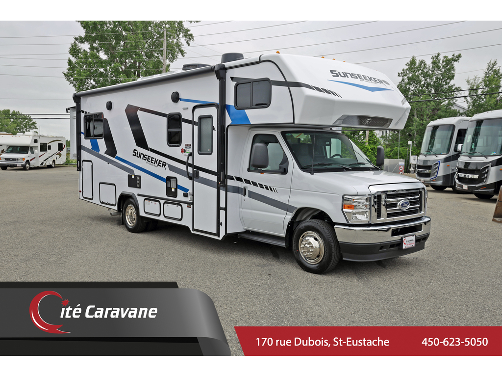 Forest River Sunseeker 2500 3 extensions CLASSE C Boiserie : River teak + cuirette : Lava . Ford V8 7.3L , Prise 30AMP , chauffe eau 6 gallons , chauffage 30,000BTU , A/C au toit 13.5BTU canalisé , ballons a air ride rite , murs de 2, fini gel-coat , toit en fibre de verre , auvent électrique , hitch de 7500lbs ,TV , frigidaire 10 pieds cube , tiroirs styles résidentiels , cuisinière a trois bruleur , stores de nuit , plafond de 7 pieds , génératrice NPS 4500Watts + programmation de démarrage a distance , 2 batteries auxiliaires , micro-onde , sièges avant en cuirette appareils en stainless , arctic Pack ( 4 saisons ) , couvert en fibre de verre , lit queen, Prélart a grandeur Beauflor , antenne digitale, comptoirs de luxe, *PREMIUM CAMPING PACKAGE (mirroirs chauffants/électrique, caméra de recule et latérales, cinema maison 5.1 , black tank flush) + panneau solaire 1427$/MOIS + taxes ! www.citecaravane.com 450-623-5050 170 RUE DUBOIS , ST-EUSTACHE, SUR LE BORD DE LA 640! UNE ENTREPRISE FAMILIALE A VOTRE SERVICE DEPUIS 1973 ! , DÉPOSITAIRE NUMÉRO 1 FOREST RIVER SUNSEEKER ! LE SPÉCIALISTE DU VR AU QUÉBEC ! Forest River Sunseeker 2500 3 slides CLASS C Wood : River teak + Dinette color : Lava . Ford V-8 7.3L , 30AMP , 6 gallon water heater , 30,000BTU heater , 13.5BTU ducted roof A/C , ride rite air suspension , 2inch thick walls , gel-coat exterior , fiberglass roof , electric awning , 7500lbs hitch , TV , 10 cubic feet fridge , residential style drawers , 3 range burner oven , micro-wave , night shades , 7 feet high ceilings , generator NPS 4500 watts + auto generator start program , 2 auxiliary batteries, spare tire , leatherette front seats , stainless steel appliances , arctic pack ( 4 seasons ) , fiberglass front cap , Queen size bed , Beauflor linoleum throughout , Digital Antenna ,Upgraded countertops,*PREMIUM CAMPING PACKAGE (heated/electric mirrors,back up and side cameras, 5.1 surround sound,black tank flush)+ Solar Panel + 1427$/MONTH +taxes. www.citecaravane.com 450-623-5050 ! CALL US TODAY ! Cité Caravane, 170 rue Dubois in Saint-Eustache, adjacent to the 640 highway. A FAMILY OWNED BUISNESS SINCE 1973 ! QUÉBEC s RV SPECIALIST !