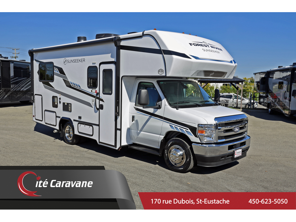 Forest River Sunseeker 2350 LE CLASSE C Tissu : Lava , boiseries : River teak, Ford 7.3L V8, Prise 30AMP , chauffe eau 6 gallons , chauffage 30,000BTU , A/C au toit 13.5BTU canalisé , murs de 2, fini gel-coat , toit en fibre de verre , auvent électrique , hitch de 5000lbs ,TV , frigidaire 10 pieds cube , tiroirs styles résidentiels , cuisinière a trois bruleur ,TV, stores de nuit , plafond de 7 pieds , génératrice de 4500watts NPS, batterie auxiliaire micro-onde , sièges avant en tissue. OPTIONS INCLUS : arctic Pack ( 4 saisons ) , couvert en fibre de verre , matelas 60x80 queen , Prélart a grandeur Beauflor , antenne digitale, comptoirs de luxe, caméra de recul + Panneau solaire 190watt 1141$/MOIS + taxes ! www.citecaravane.com 450-623-5050 170 RUE DUBOIS , ST-EUSTACHE, SUR LE BORD DE LA 640! UNE ENTREPRISE FAMILIALE A VOTRE SERVICE DEPUIS 1973 ! , DÉPOSITAIRE NUMÉRO 1 FOREST RIVER SUNSEEKER ! LE SPÉCIALISTE DU VR AU QUÉBEC ! Classe A , B , B+ , C Forest River Sunseeker 2350 LE CLASS C fabric : Lava , wood : River teakFord 7.3L V8 , 30AMP , 6 gallon water heater , 30,000BTU heater , 13.5BTU ducted roof A/C , 2inch thick walls , gel-coat exterior , fiberglass roof , electric awning , 5000lbs hitch, TV , 10 cubic feet fridge , residential style drawers , 3 range burner ,convection micro-wave , night shades , 7 feet high ceilings , 4500watts NPS generator, auxiliary battery, fabric front seats . INCLUDED OPTIONS : arctic pack ( 4 seasons ) ,, fiberglass front cap , matress 60x80 queen , Beauflor linoleum throughout , Digital Antenna ,Upgraded countertops,back up camera + panneau solaire 190Watt . 1141$/MONTH +taxes. www.citecaravane.com 450-623-5050 ! CALL US TODAY ! Cité Caravane, 170 rue Dubois in Saint-Eustache, adjacent to the 640 highway. A FAMILY OWNED BUISNESS SINCE 1973 ! QUÉBEC s RV SPECIALIST ! Class A , B , B+ , C