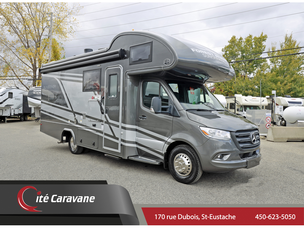 Classe C / B+ 24 pieds Mercedes Sprinter, Forest River Sunseeker MBS 2400 DSB + crics hydraulics Extérieur : Shadow grey- Tissu : Lava - Boiseries : River teak Mécanique Mercedes turbo diesel 2.0L 4cylindre bluetec ! génératrice Flex Power 4000 watts LP , air climatisée canalisé 15,000btu avec heat pump , chauffage 30,000BTU , chauffe eau 6 gallons (gas + électrique) vitres de luxe , peinture complète , capacité de remorquage de 4200lbs , sièges pivotants ,artic pack (4saisons), télévision , lit queen (60x75) , réfrigérateur 10.7 pi cube , recouvrement de plancher Beauflor , toiture en fibre de verre , marche électrique , auvent électrique , 2 batterie auxiliaires ,haut parleurs extérieur , ensemble de lumières DEL , coffres de luxe moulés , quick connect LP*PREMIUM CAMPING PACKAGE ( caméra de recul et latérales , cinéma maison 5.1 , black tank flush ,toile dextension , stores avant magnétique ) + Panneau solaire 190 watts 1778$+txs/MOIS MEILLEUR PRIX AU CANADA !! Forest River Sunseeker MBS, meilleur qualité prix 24 pieds Mercedes! www.citecaravane.com 450-623-5050, UNE ENTREPRISE FAMILIALE A VOTRE SERVICE DEPUIS 1973 !! LE SPÉCIALISTE DU VR AU QUÉBEC Venez nous voir dès aujourdhui chez Cité Caravane au 170 rue dubois à Saint-Eustache sur le bord de la 640 Classe C B+ , 24 foot Mercedes Sprinter , Forest River Sunseeker MBS 2400 DSB + hydraulic jacks Exterior : Shadow grey -Material : Lava -Wood : River teak Mercedes turbo diesel 2.0L 4 Cylinder bluetech ! 4000 watt LP generator Flex power , 15,000BTU avec heat pymp , ducted roof A/C , 30,000BTU heating system , 6 gallon water heater ( gas/propane ) , luxury frameless windows , full body paint , 4200 pound towing capacity , swivel seats , artic pack (4seasons) , televison , queen size bed (60x75) , 10.7 ft cube refrigerator , Beauflor lineolium through out , fiberglass roof , electric step , electric awning , 2 coach batteries ,exterior speakers , LED lighting , quick connect LP *PREMIUM CAMPING PACKAGE* ( back up and side cameras , surround sound system 5.1 , black tank flush , slide topper , magnetic front shades) + 190Watt solar Panel 1778$+txs/MONTH Forest River Sunseeker MBS, best value for your money!!! Mercedes-Benz ! www.citecaravane.com 450-623-5050 ! CALL US TODAY ! Cité Caravane, 170 rue Dubois in Saint-Eustache, adjacent to the 640 highway. A FAMILY OWNED BUISNESS SINCE 1973 ! QUÉBEC s RV SPECIALIST !