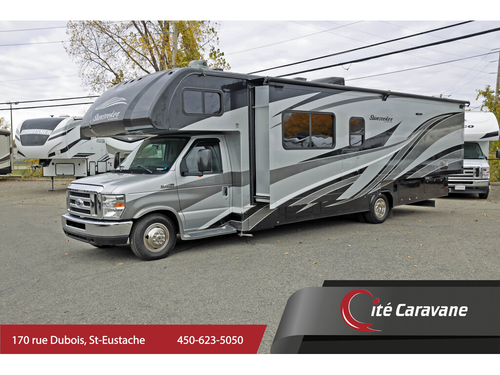 Forest River Sunseeker 3050 avec seulement 47 000km. VR munit de 6 pneus neuf, une peinture extérieur complet, des crics hydrauliques, max air sur la toiture, marche pieds mouler en fibre de verre, auvent électrique avec lumière leds, toile protectrice sur l’extension, ballait arrière, sorti quick connecte LP pour BBQ, miroir double chauffant électrique, vitre double thermos, frigo 4 portes, sofa, dinette, Cuisine avec four avec 3 ronds, micro-onde a convection, prelart a grandeur, système de chauffage et air climatiser centrale, télévision 12V, douche avec porte en vitre et encore plus !! Financement disponible www.citecaravane.com 450-623-5050 RUE DUBOIS ,ST-EUSTACHE, SUR LE BORD DE LA 640! UNE ENTREPRISE FAMILIALE A VOTRE SERVICE DEPUIS 1973 --------------------------------------------------------------------------------------------------------------------------------- Forest River Sunseeker 3050 with only 47,000 km. RV equipped with 6 new tires, a complete exterior paint job, hydraulic jacks, Max Air on roof, molded fiberglass running board, electric awning with LED lights, slidetopper, rear mudflap, LP quick-connect BBQ hookup, electric heated double mirror, double-pane windows, 4-door refrigerator, sofa, dinette, kitchen with 3-burner oven, convection microwave, full linoleum flooring, central heating and air conditioning system, 12V television, shower with glass door, and much more! Financing available. www.citecaravane.com 450-623-5050 DUBOIS STREET, ST-EUSTACHE, ON HIGHWAY 640! A FAMILY BUSINESS AT YOUR SERVICE SINCE 1973