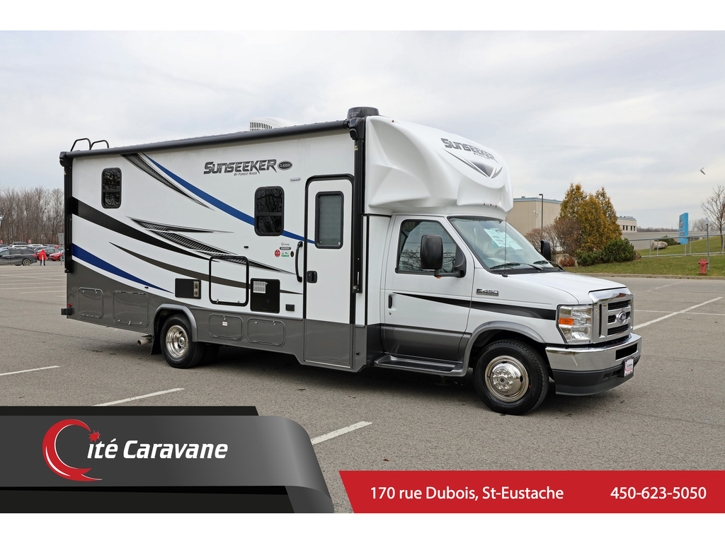 * disponible sur commande - available on order * Forest River Sunseeker 2440 2 extensions CLASSE C/B+ Skirt paint, Tissu : Stone, boiseries : Vermont oak, Ford V8 7.3L , Prise 30AMP , chauffe-eau 6 gallons , chauffage 30,000BTU , A/C au toit 13.5BTU canalisé , ballons a air ride rite , murs de 2, fini gel-coat , toit en fibre de verre , auvent électrique , hitch de 7500lbs ,TV , frigidaire 10 pieds cube , tiroirs styles résidentiels , cuisinière a trois bruleur , stores de nuit , plafond de 7 pieds , génératrice de 4000watts onan, 2 batteries auxiliaires ,, micro-onde , sièges avant en cuirette appareils en stainless , arctic Pack ( 4 saisons ) couvert en fibre de verre , matelas queen , Prélart a grandeur Beauflor , antenne digitale, comptoirs de luxe, *PREMIUM CAMPING PACKAGE (mirroirs chauffants/électrique, caméra de recule et latérales, cinema maison 5.1 , black tank flush) + panneau solaire , ! www.citecaravane.com 450-623-5050 170 RUE DUBOIS , ST-EUSTACHE, SUR LE BORD DE LA 640! UNE ENTREPRISE FAMILIALE A VOTRE SERVICE DEPUIS 1973 ! , DÉPOSITAIRE NUMÉRO 1 FOREST RIVER SUNSEEKER ! LE SPÉCIALISTE DU VR AU QUÉBEC ! Forest River Sunseeker 2440 2 slides CLASS C/B+ Skirt paint , fabric : Stone , wood : Vermont Oak , Ford V8 7.3L , 30AMP , 6 gallon water heater , 30,000BTU heater , 13.5BTU ducted roof A/C , ride rite air suspension , 2inch thick walls , gel-coat exterior , fiberglass roof , electric awning , 7500lbs hitch , spare tire , TV , 10 cubic feet fridge , residential style drawers , 3 range burner oven , micro-wave , night shades , 7 feet high ceilings , 4000watts Onan generator, 2 auxiliary batteries, , leatherette front seats , stainless steel appliances , arctic pack ( 4 seasons ) , fiberglass front cap , queen matress , Beauflor linoleum throughout , Digital Antenna ,Upgraded countertops,*PREMIUM CAMPING PACKAGE (heated/electric mirrors,back up and side cameras, 5.1 surround sound,black tank flush)+ Solar Panel . . www.citecaravane.com 450-623-5050 ! CALL US TODAY ! Cité Caravane, 170 rue Dubois in Saint-Eustache, adjacent to the 640 highway. A FAMILY OWNED BUISNESS SINCE 1973 ! QUÉBEC s RV SPECIALIST !