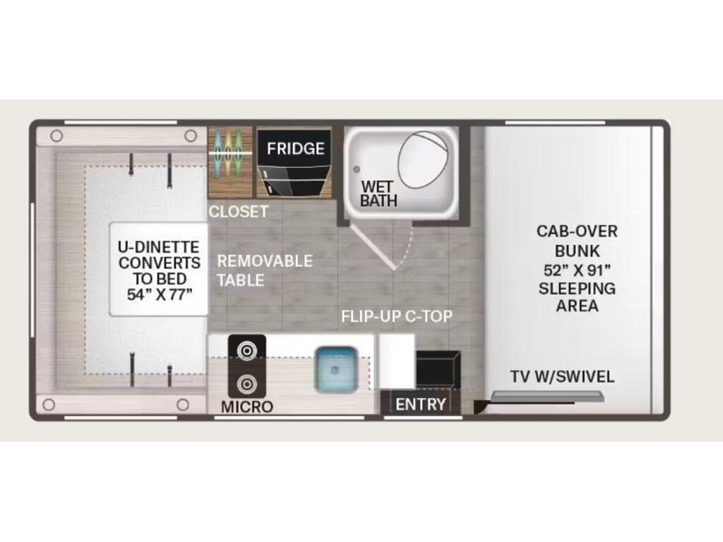 FOUR-WINDS 19Z 2026 Châssis Ford Série E - V8 de 7,3 L. 325 ch, couple de 450 lb-pi avec TPM - Empattement de 138 po, roues arrière jumelées, réservoir de carburant de 40 gallons Châssis Ford Série E - V8 de 7,3 L. 325 ch, couple de 450 lb-pi avec TPM - Empattement de 138 po, roues arrière jumelées, réservoir de carburant de 40 gallons. Générateur à gaz/GPL 50 State de 4,0 kW Compris Plus d'informations sur le générateur gaz/GPL 50 State de 4,0 kW Climatisation Climatiseur de toit avant de 13 500 BTU Climatiseur de toit avant de 13 500 BTU. Capacité de couchage : 4 Poids total admissible : 8 755 livres CCC : 2 745 livres Longueur extérieure : 20 pieds 5 pouces Hauteur extérieure 10 pieds 8 pouces Largeur extérieure : 7 pieds 10 pouces Frais/Gris/Noir : 20/16/17 gallons Propane : 40 livres Auvent : 11 pieds. Centre du VR : Votre expert en véhicules récréatifs au Québec Découvrez le plus vaste inventaire de VR neufs et d'occasion au meilleur prix. Que vous cherchiez une roulotte, une caravane à sellette (fifth wheel), une caravane-portée, un motorisé ou une remorque, notre équipe vous propose les plus grandes marques : Roulottes et Fifth Wheels : Rockwood, Flagstaff, Cougar, Springdale, Sunset Trail, Chaparral, Columbus, Impression, Kodiak, Coleman, E-Pro, Cruiser RV. Motorisés (Classe A, B, C) : Axis, Hurricane, Fleetwood, Four Winds, Coachmen Cross Trail, Prism, Echelon, Outlaw, Beyond, Nova. Remorques et Équipements : NN, Apogée, Armorteck et génératrices Ducar ou Cummins. Bien plus que de la vente : Un service complet Département de pièces et boutique : Un inventaire massif de pièces de remplacement et d'accessoires de camping pour améliorer votre confort. Service et réparation : Un centre de service spécialisé pour l'entretien et la réparation de vos unités, assuré par des techniciens experts. Financement : Profitez de nos solutions de financement avantageuses directement sur place. Un modèle vous intéresse ou vous avez besoin d'un entretien ? Contactez-nous pour une demande d'information ou passez nous voir en succursale pour une visite ! Note : Les photos et options peuvent différer de la réalité.