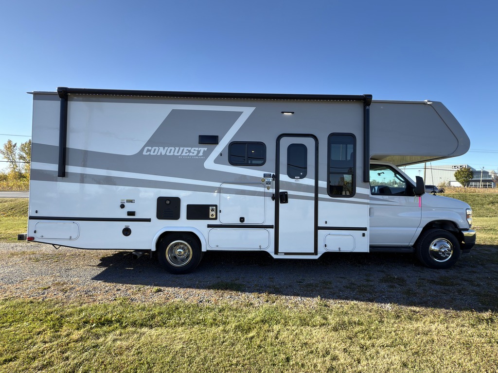 Options : Réservoir de propane, Climatiseur conduit central, Vitres électriques, Miroirs électriques, Régulateur de vitesse, Volant inclinable, Caméra Marche arrière, Échelle, Attache-remorque, Douche, Toilette, Lit queen-size, Téléviseur, Antenne pour téléviseur, Micro-onde, Cuisinière, Four, Hotte, Fourneau, Auvent, Chauffe-eau Superbe motorisé classe C 2025 Gulf Stream Conquest 6250 avec moteur Ford V8 7.3 litres, partiellement peinturé, 1 extension, frigo 12 volt, lit queen 60X74 et encore plus... We also speak english Voir www.superieurvr.com pour plus de photos Un véhicule récréatif demeure la meilleure manière de voyager en toute sécurité en protégeant votre santé et celle des personnes qui vous sont chères! Financement disponible et échange accepté Appelez nous sans frais au 1-888-756-0481 Supérieur VR c’est plus de 15 ans d'expérience à votre service. Des techniciens formés, accrédités et expérimentés. C’est 15 baies de service: mécanique, habitation, esthétique, atelier de carrosserie complet avec chambre à peinture grand format (50 pieds). Centre de service autorisé pour les génératrices Onan Cummins, systèmes de chauffage Aqua Hot, Hydro hot, precision temps et Oasis. Nous vendons des motorisés usagés certifiés. Nous avons aussi des motorisés neufs de marque Coachmen Sportscoach, Encore, Mirada et Pursuit. Nous sommes aussi détaillant du manufacturier Gulfstream pour les marques Conquest et BT Cruiser. Sans oublier le manufacturier Holiday Rambler pour les marques Admiral, Eclipse, Invicta et Vacationer. De plus, nous avons un vaste choix de pièces sur place. Garantie : 1 an de base Gulf Stream 5 ans motopropulseur Ford Garantie supplémentaire disponible