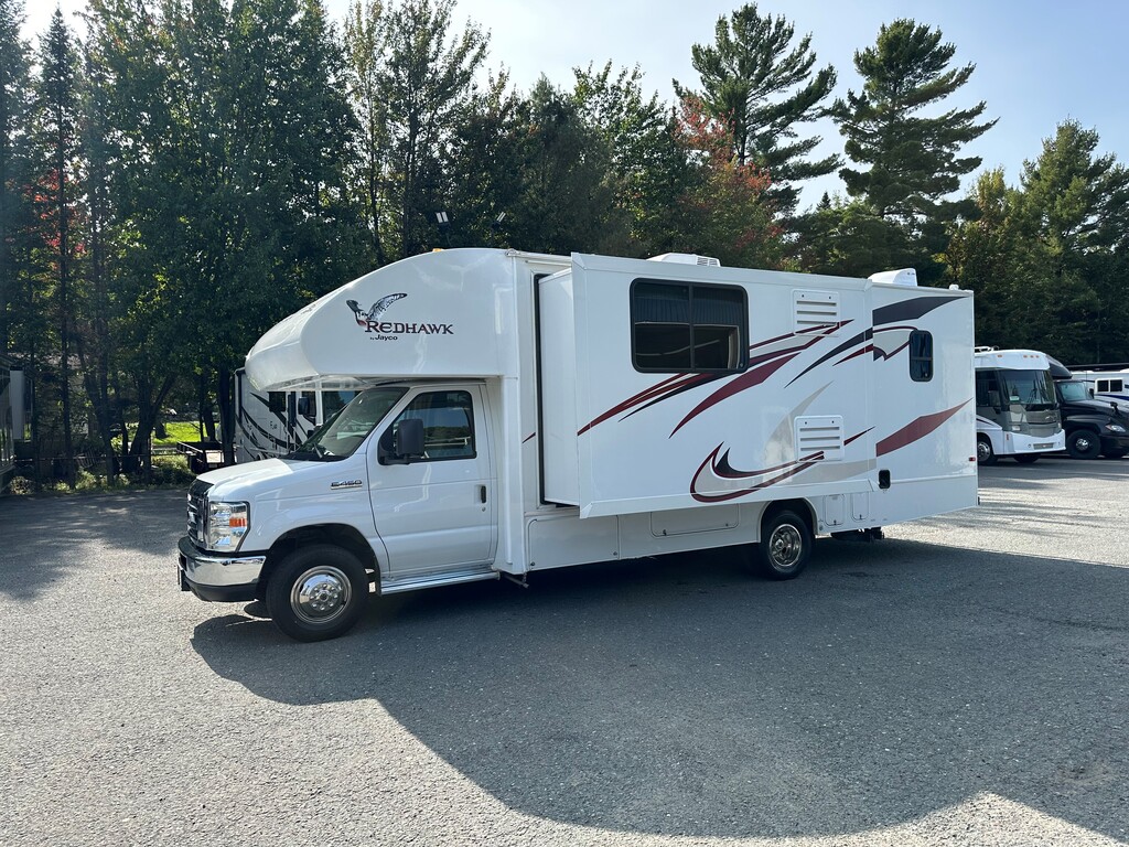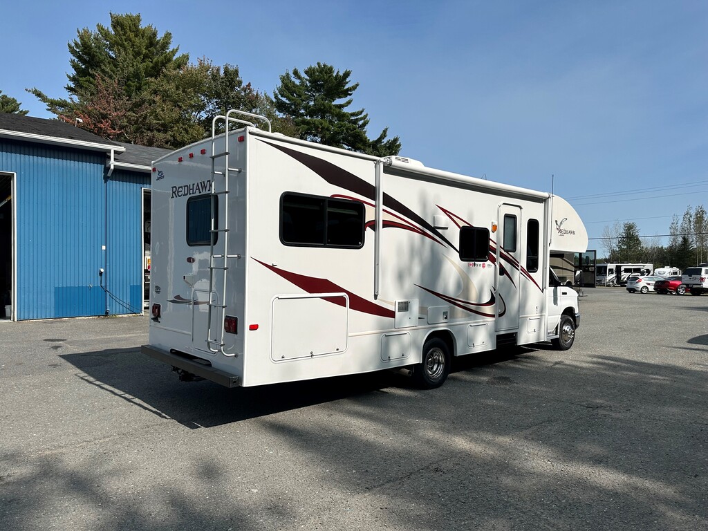 Jayco Redhawk 26XS 2013, Mécanique Ford V-10 Triton, Génératrice Onan Microquiet 4 000W, Auvent électrique 11 pieds, Table en banquette qui fait un lit, Poêle au propane, Micro-Ondes à convection, Réfrigérateur Norcold LP/12V, Grandes armoires, Lit queen, et plus!!! Année : 2013 Mécanique : Ford V10 Triton 6.8L Châssis : Ford E450 Carburant : Essence Transmission : Torqshift 5 vitesses Motricité : 4X2 Longueur hors-tout(pieds) : 28.7 Largeur(pieds) : 8.33 Hauteur(pieds) : 11.58 Empattement(pouces) : 181 PNBV(Lbs) : 14,500 Réservoir essence(Gal.) : 55 Capacité eau fraîche(Gal.) : 32 Capacité eau grise(Gal.) : 40 Capacité eau noir(Gal.) : 32 Capacité réservoir propane(Lbs) : 53 Nombre d’extensions : 1 Capacité d’hébergement : 5 Pneus : LT225/75R 16 Air conditionné(BTU) : 15,000 Chauffage(BTU) : 31,000 Capacité chauffe-eau(Gal.) : 6