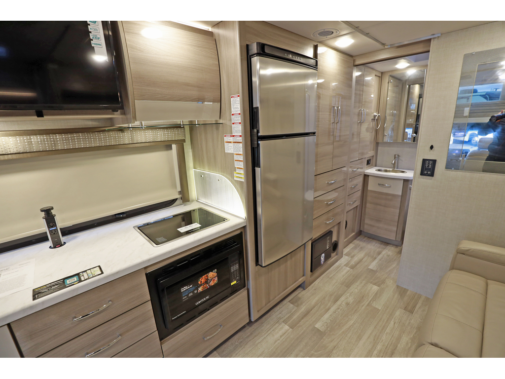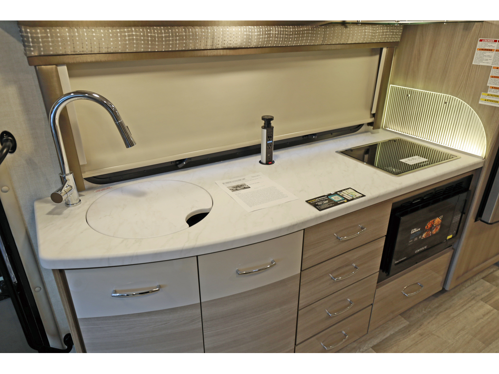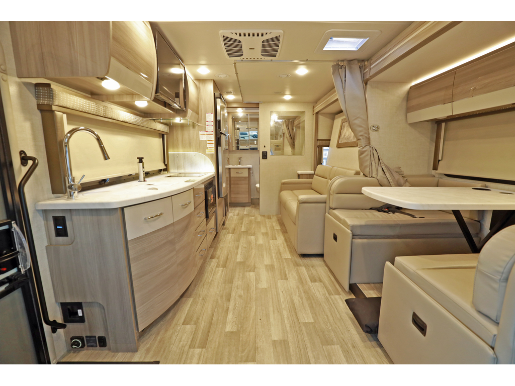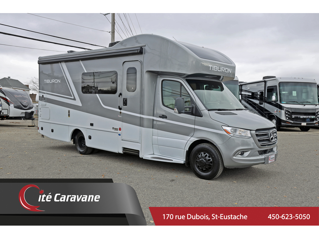 disponible sur commande -available on order Thor Motor Coach Tiburon Mercedes Diesel Sprinter modèle 24FB + crics hydraulics Exterieur : Shady Creek + Interieur : Café mocha + Miami modern Ce véhicule récréatif de luxe mesure environ 24 pieds 9 pouces de longueur et roule sur le châssis Mercedes Benz Sprinter de premier ordre équipé d'un système d'assistance au freinage actif, d'une assistance à l'attention, d'une assistance de voie active, d'un système d'essuie-glace humide et d'un régulateur de distance Distronic Plus. Vous trouverez également un chauffe-eau sans réservoir, Génératrice et les armoires ultra-hautes de gamme de TMC qui distinguent cet autocar de la concurrence! L'équipement en option comprend le magnifique extérieur peint pour tout le corps, la sangle de sécurité pour enfant unique et le toit AC. Le tout nouveau Tiburon Sprinter comprend également un attelage de 5000 lb, un capuchon avant en fibre de verre avec puits de lumière, un auvent de terrasse électrique sans bras avec éclairage à DEL intégré, des fenêtres sans cadre, une radio de tableau de bord multimédia avec Bluetooth, des rétroviseurs extérieurs chauffants et à distance, un système de secours, un pivot chaises capitaines, guides de tiroirs à roulement à billes métalliques pleine extension, Rapid Camp +et bien plus www.citecaravane.com 450-623-5050 170 rue dubois st-eustache J7P 4W9 Thor Motor Coach Tiburon Mercedes Diesel Sprinter Model 24FB. + hydraulic jacks Exterior : Shady Creek + Interior : Café mocha + Miami modern This Luxury RV measures approximately 24 feet 9 inches in length and rides on the premier Mercedes Benz Sprinter chassis equipped with an Active Braking Assist system, Attention Assist, Active Lane Assist, a Wet Wiper System and Distance Regulator Distronic Plus. You will also a tank-less water heater, an generator and the ultra-high-line cabinetry from TMC that set this coach apart from the competition! Optional equipment includes the beautiful full-body paint exterior, single child safety tether & Roof A3C. The all new Tiburon Sprinter also features a 5,000 lb. hitch, fiberglass front cap with skylight, an armless power patio awning with integrated LED lighting, frameless windows, a multimedia dash radio with Bluetooth , heated & remote exterior mirrors, back up system, swivel captain chairs, full extension metal ball-bearing drawer guides, Rapid Camp+, and much more www.citecaravane.com 450-623-5050 170 rue dubois st-eustache J7P 4W9