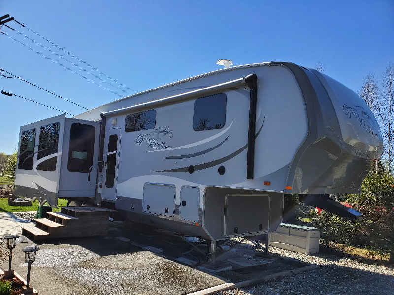 38 pi, 3 extensions, mise à niveau automatique, auvent avec lumières Del intégrées, climatiseur 15k btu,foyer, lessiveuse, réfrigérateur 8 picu 4 portes,ilot a...