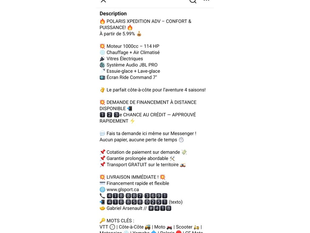Annonce # 1372234 VTT Côte-à-côte à vendre à Saint-Gervais : Polaris XPEDITION ADV NORTHSTAR 2026 Saint-Gervais