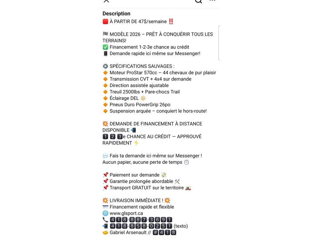 VTT Multiusage Polaris Sportsman 570 Trail 2026 à vendre à Saint-Gervais