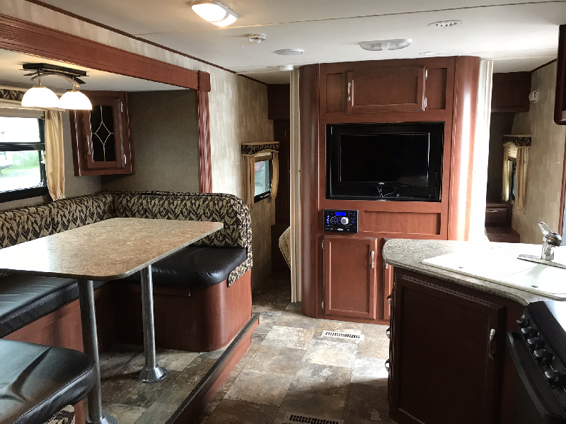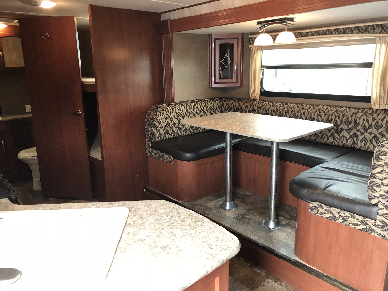 26 pieds Poids: 4880 lbs 1 extension Vient avec barres de torsion Peut coucher 6 personnes Chambre fermée à l?avant 2 bunk beds Dinette en « U » Matelas neuf dans chaque lit de l?été dernier Auvent électrique Douche extérieure Etc! Prêt à camper !!! PS: Vos enfants retrouverons toujours votre emplacement sur un camping.. soyez sans crainte!! ??