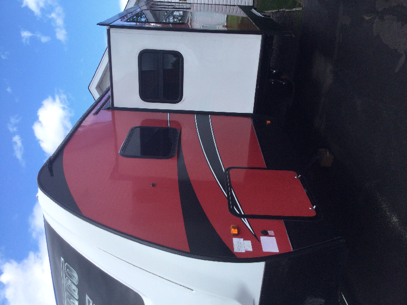 Très belle roulotte achetée neuve en 2017, une extension, poids à vide de 6300 lbs. Tous les vérins (5) sont électriques. Deux bonbonnes de propane de 30 lbs. Réservoir eau chaude de 10 gallons. Intérieur beige. Peut coucher de 4 à 6 personnes. Tous les joints ont été refaits cette année.